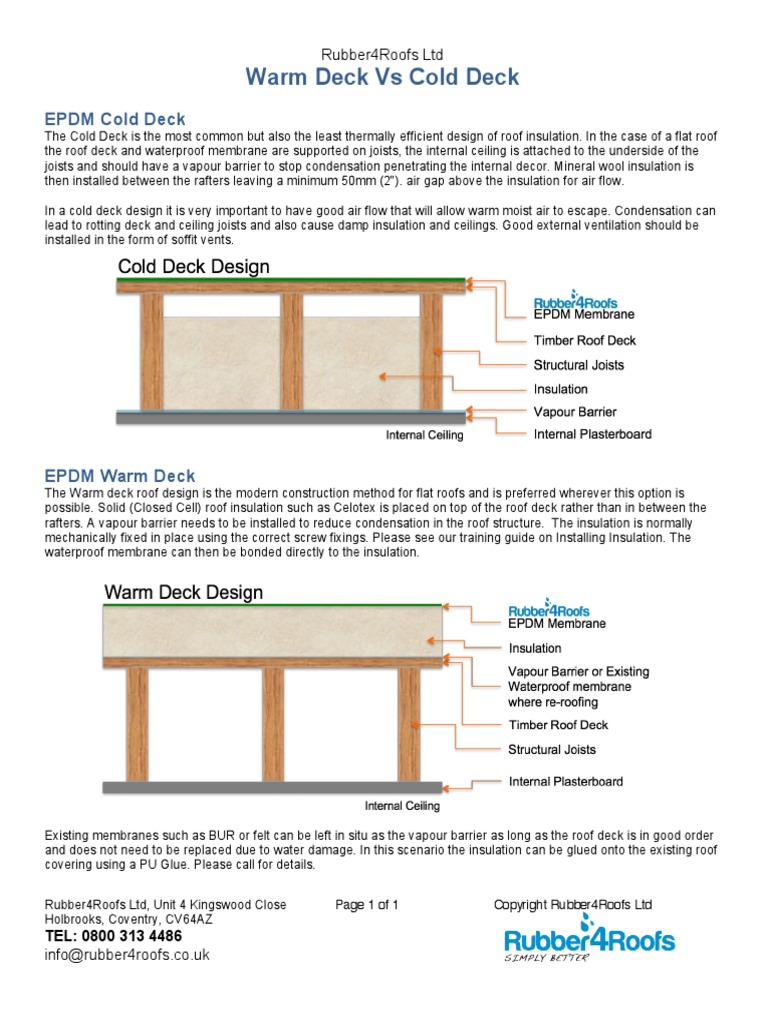 Cold roofs in the case of cold roofs the residential flat roofs have the waterproof placed directly on the deck and any insulation would be placed above the ceiling. When warm damp air permeates up through the ceiling and reaches the cold roof space the change in temperature can result in condensation forming. Materials should be compatible with each other. On a flat roof this could be air in at one ventilated facia soffit and air out via an opposite ventilated facia soffit.