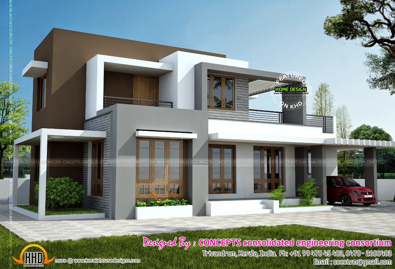 Designed by r it designers kannur kerala. 2400 square feet 223 square meter 267 square yards 4 bedroom modern flat roof home design. 4 attached bathrooms. Designed by the dream home designers palakkad kerala.