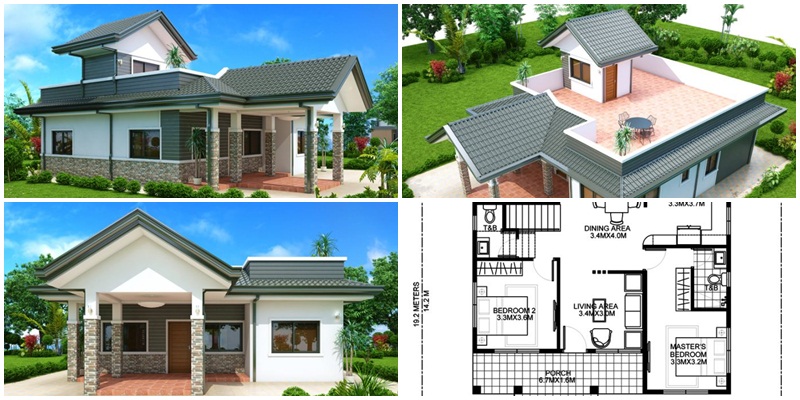 The ground floor has a total floor area of 107 square meters and 30 square meters on the second floor not including the roof deck area. Elevated in 3 steps a goo way to welcome guests is the covered porch with the whole width of the house intended for sitout for relaxation while outside and standing by at the front. Here are six beautiful house design with a roof deck from pinoy e plans. This beautiful single floor house with roof deck can be constructed in a lot having a total lot area of 111 square meters.
