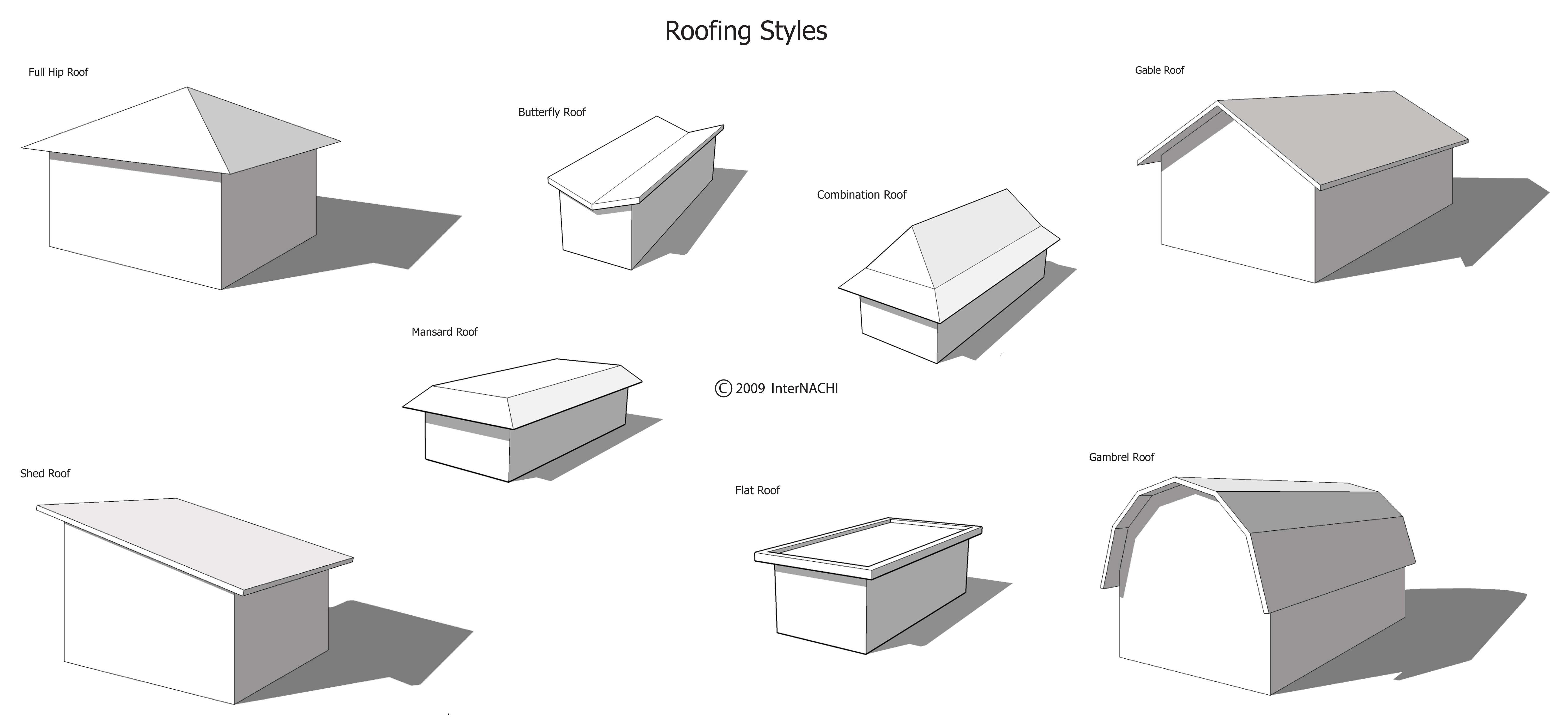 Slates interlocking and plain tiles zinc corrugated sheets etc. Intricate roofs have many parts that incorporate several of the basic roof designs such as a gable roof sitting atop a gambrel or variations of the gable valley roof design using one or a variety of different types of roof trusses also see our very detailed diagrams showing the different parts of a roof truss. A low slope or flat seeming roof covered with alternating layers of roofing felt and hot mapped asphalt. Hip roofa type of roof containing sloping planes of the same pitch on each of four sides.