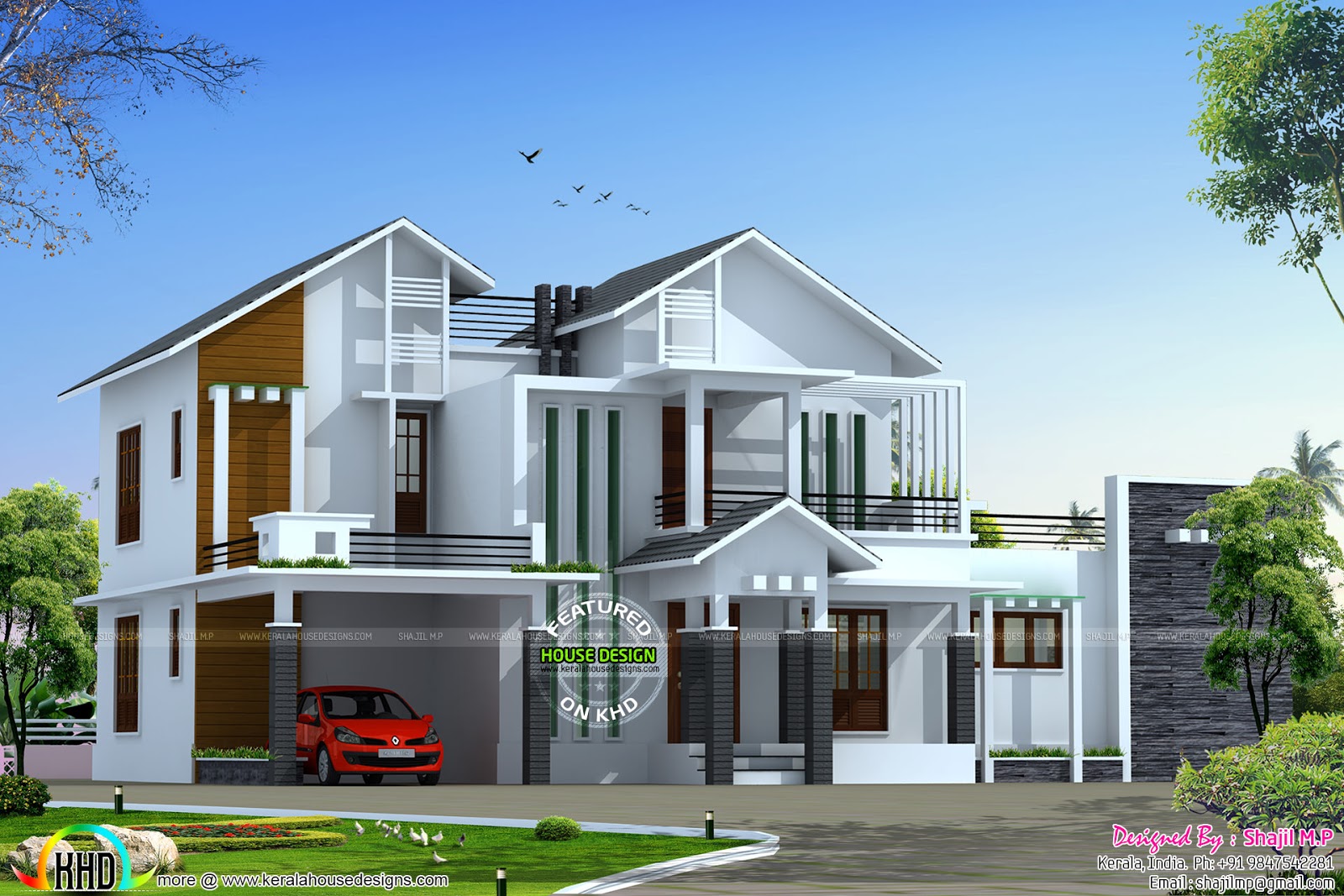 Sloped roof elevation designs. Garage roofs can be arched sloping or flat depending on your taste and aptitude. If you like and want to share. Call 1 800 913 2350 for expert help. Sloped roof front elevation home plan designs double story house sloped roof front elevation 2 story 1873 sq ft home sloped roof front elevation double storied cute 4 bedroom house plan in an area of 1873 square feet 17400 square meter sloped roof front elevation 20811 square yards.