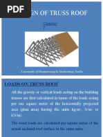 Composition 4 ply felt gravel 18 ga metal deck fiberglass insulation gravel and bitumen waterproofing membrane ceiling. Purlins are z 7 x 25 light gage steel weighing 27 lbft use wt sections for the chords double angles ll for the verticals and single angels l for the diagonals. To download the full design paper in printable pdf format. Load combination and design of truss members the member forces and support reactions calculated earlier for point dead loads and wind loads are combined in this section to obtain the design member forces and support reactions.