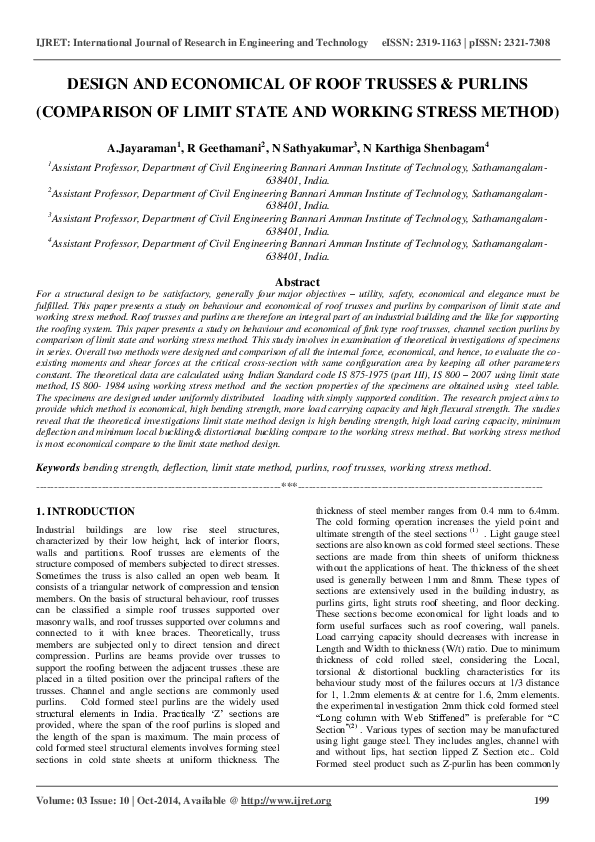 Saved by rajib dey. For economic spacing of roof trusses the cost of truss should be equal to twice the cost of purlins the cost of roof covering. Bridge trusses and roof trusses. Plane trusses and space trusses.